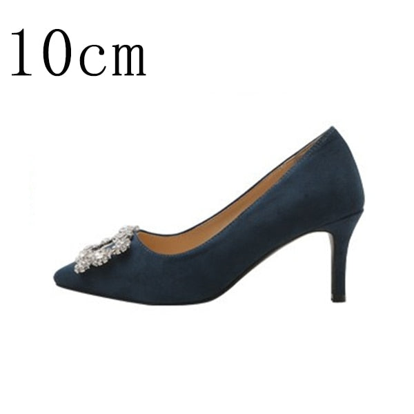 Women Pumps Rhinestone Female High Heels Women Shoes Pointed Toe Dress Shoes Soft Thin Heel Wedding Shoes 2020 New Arrival DE